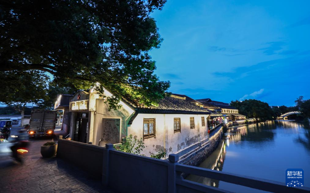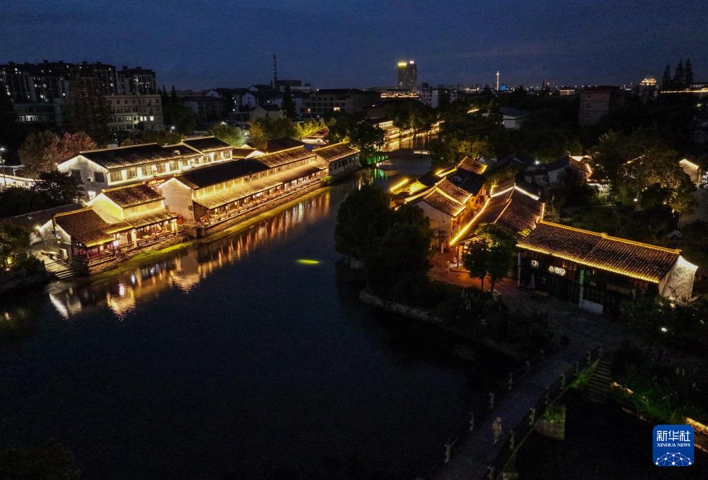 這是9月19日拍攝的夜色中的沈蕩鎮老街(無人機照片)。