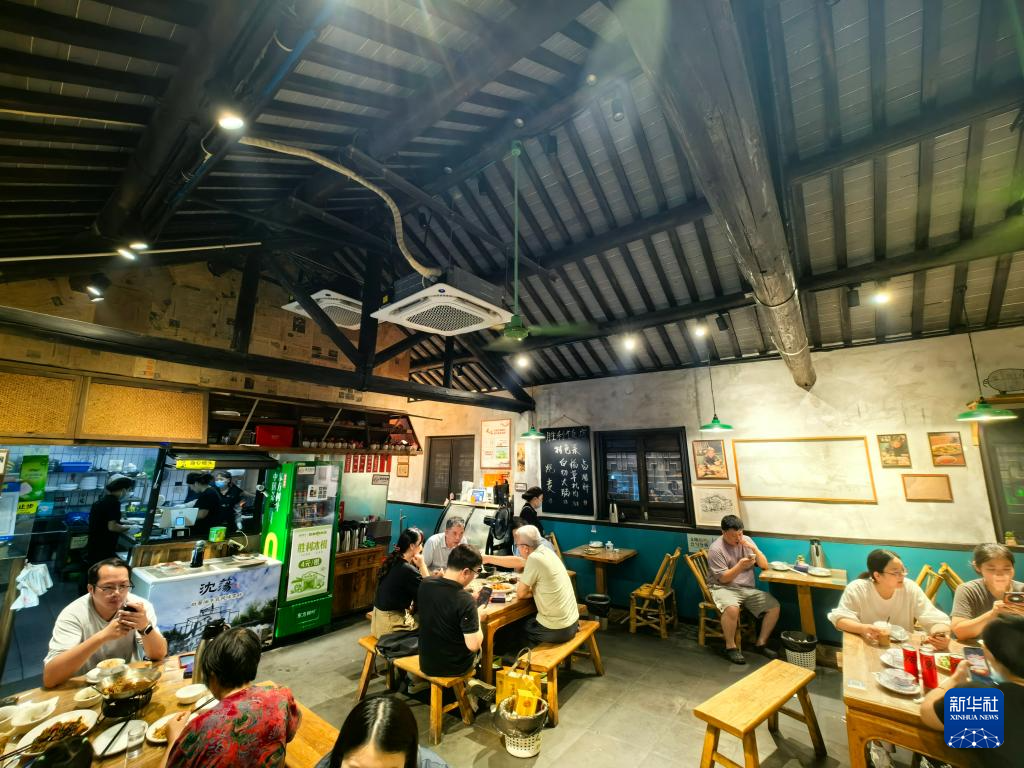 9月19日,人們在沈蕩鎮老街上的勝利飯店就餐。這家飯店曾在余華小說中提到過,吸引了各地游客前來打卡。