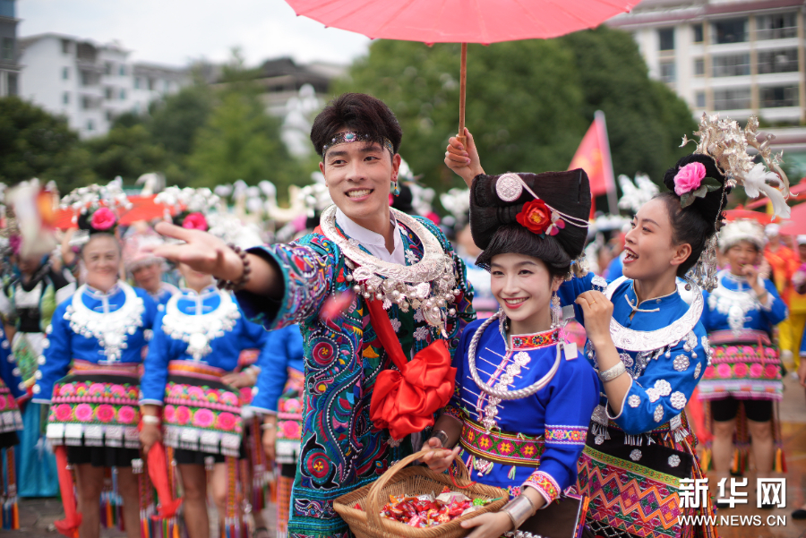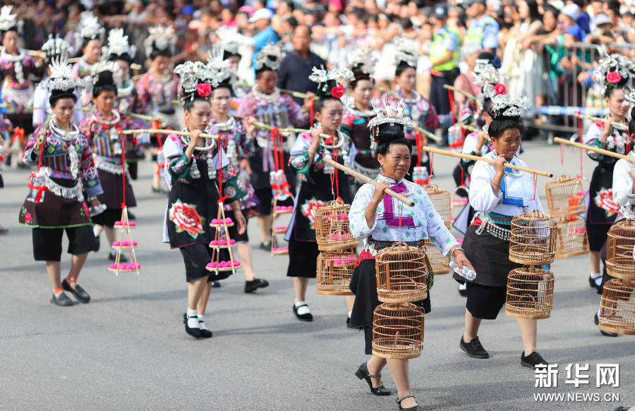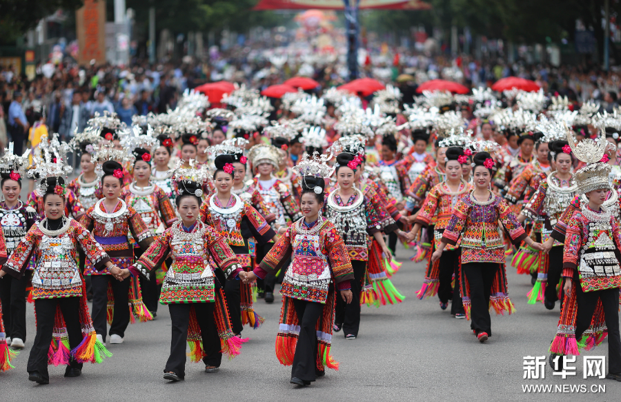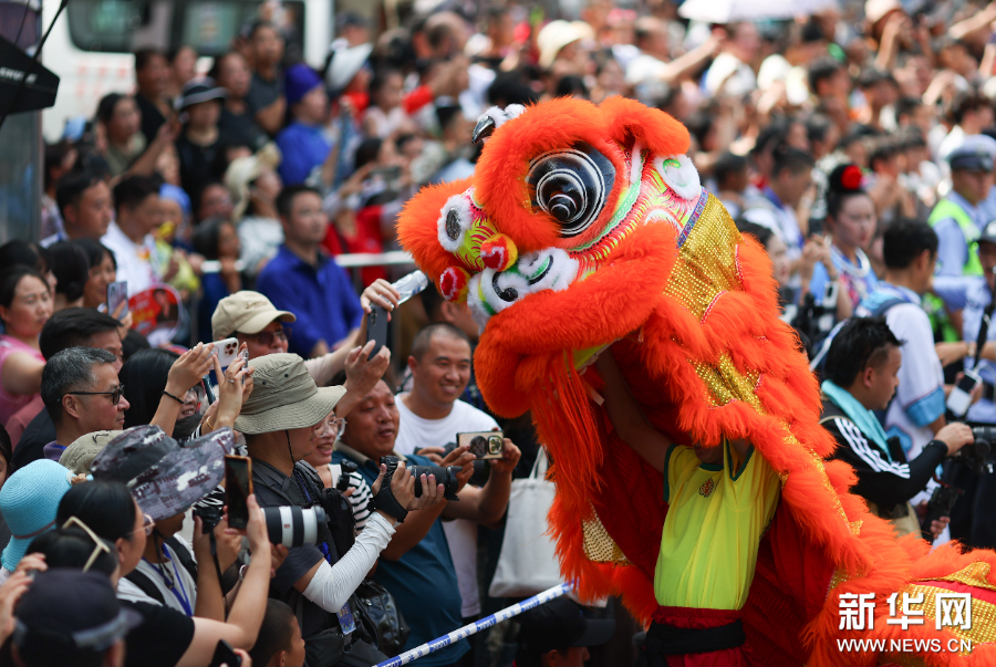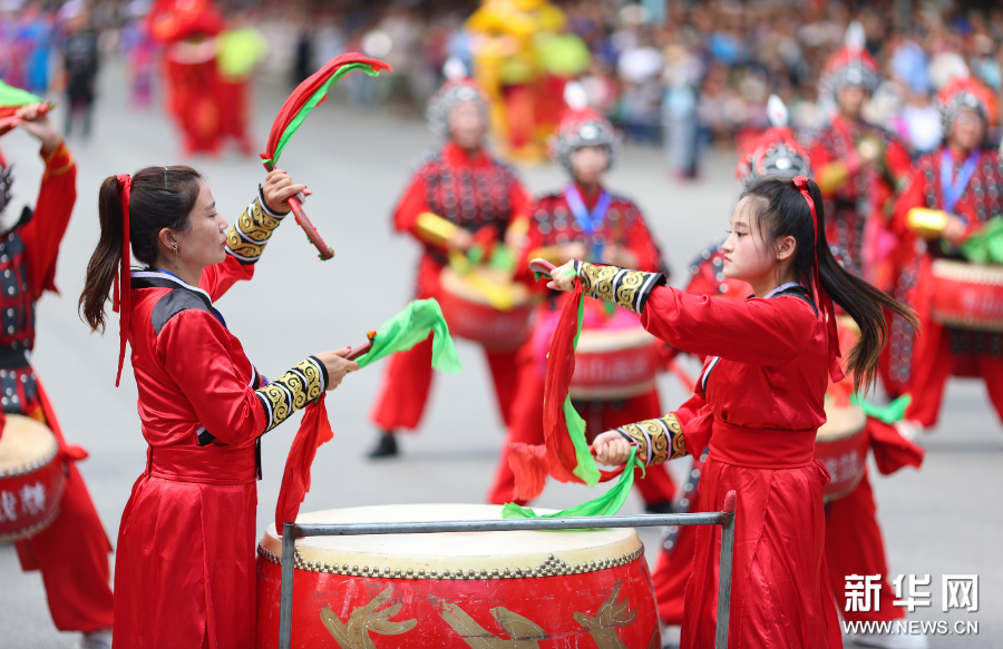 9月20日,第三屆中國非物質文化遺產保護年會暨第四屆丹寨非遺周非遺巡游展演,在貴州省黔東南苗族侗族自治州丹寨縣精彩上演。巡游展演集結了46個方陣,近萬名演職人員同臺演繹,匯聚了河北常山戰鼓、陜西安塞腰鼓、福建福州游神、廣東佛山醒獅等全國知名非遺項目,以及貴州省內各市州和丹寨本地的非遺服飾、歌舞、技藝等,通過沉浸式體驗與互動,讓市民和游客近距離感受非遺獨特魅力,展現中華優秀傳統文化的多元融合與生機活力。(楊武魁 攝)
