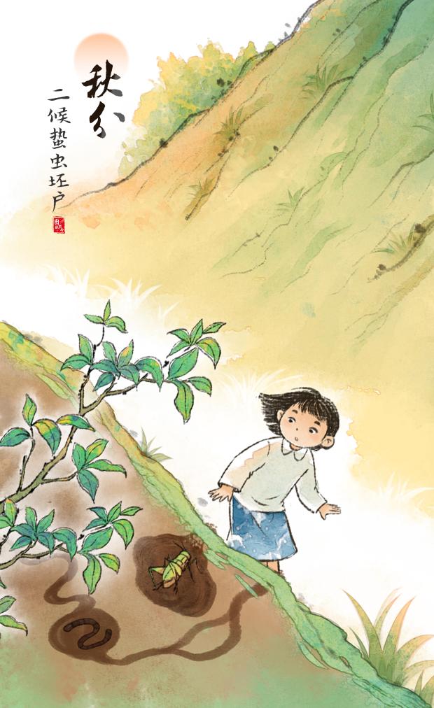 我國古人將秋分分為三候:一候雷始收聲,二候蟄蟲坯戶,三候水始涸。古人認為雷是因為陽氣盛而發聲,秋分后陰氣開始旺盛,所以不再打雷,這標志著暑氣的終結,也是秋寒的開始;由于天氣變冷,蟄居的小蟲開始藏入洞中,并且用細土將洞口封起來以防寒氣侵入;由于天氣干燥,水汽蒸發快,所以湖泊與河流中的水量變少,一些沼澤和水洼便處于干涸之中。