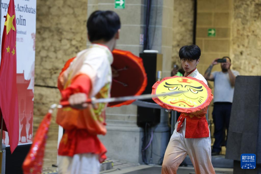 9月23日,在墨西哥首都墨西哥城,河南省雜技集團的演員在墨西哥參議院表演武術。新華社記者 李夢馨 攝