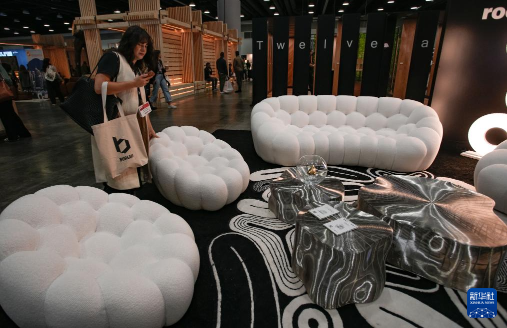 9月26日,在加拿大溫哥華2025年度室內設計展上,人們參觀體驗家具設計作品。