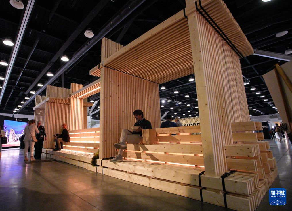 這是9月26日在加拿大溫哥華2025年度室內設計展上拍攝的木質結構室內設計作品。