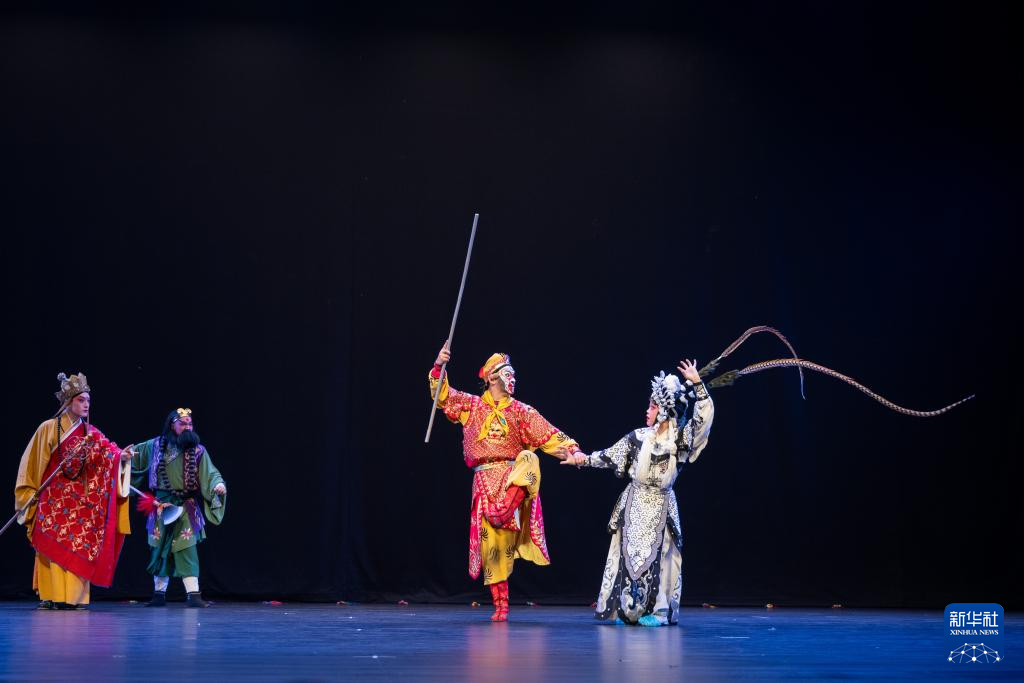 中國浙江婺劇藝術研究院25日在剛果(金)首都金沙薩演出《天女散花》《三打白骨精》等婺劇經典劇目,精彩演繹受到當地觀眾熱烈歡迎。演出由中國駐剛果(金)大使館主辦,浙江婺劇藝術研究院20余名藝術家組成創演陣容,在中國援建的金沙薩中部非洲文化藝術中心舉行。演出吸引了約800名觀眾。