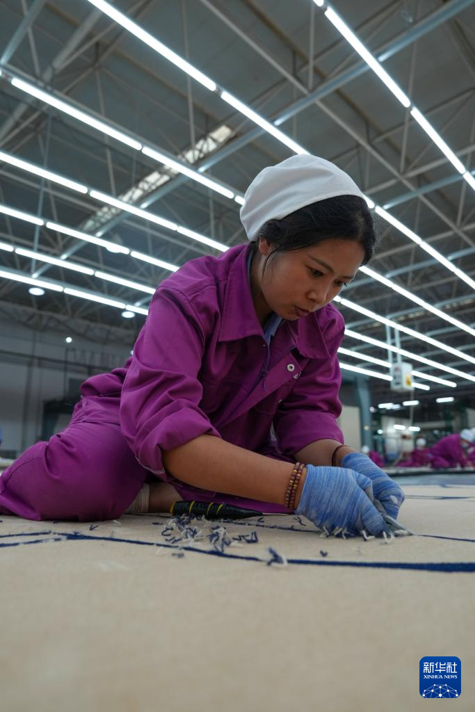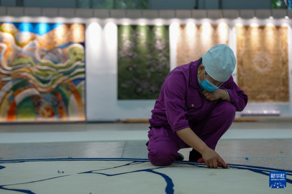 9月27日,在西寧市圣源地毯集團有限公司生產車間,一名操作工在制作藏毯。