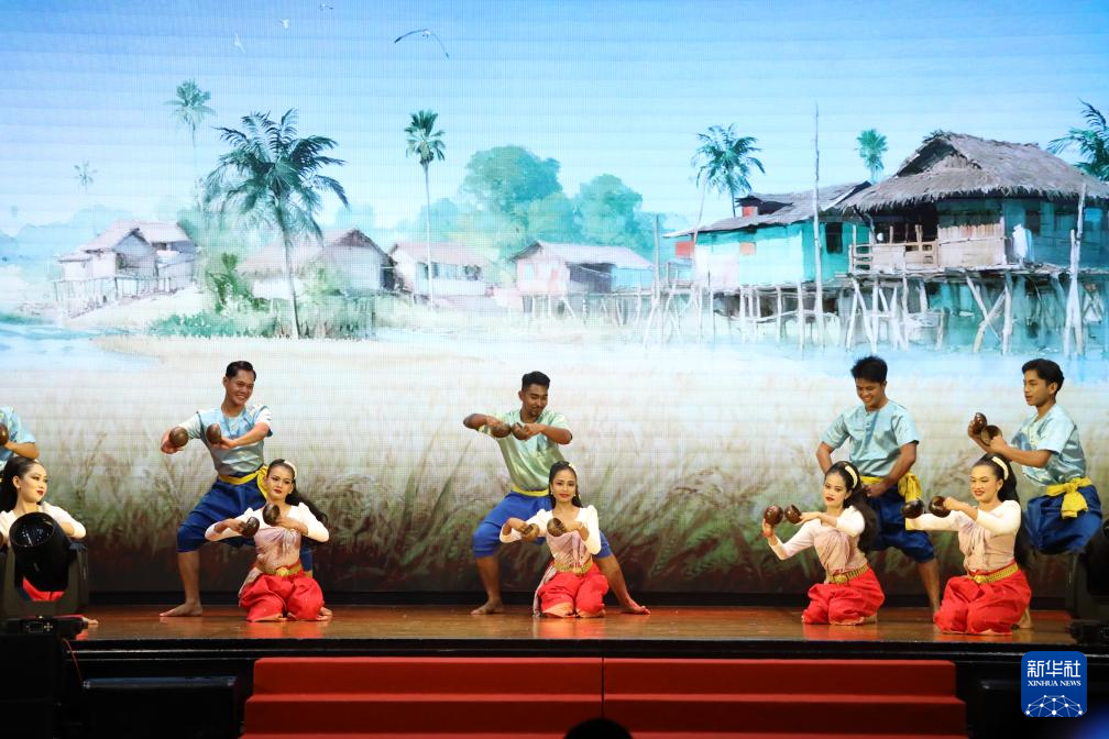 9月28日,柬埔寨表演團體在金邊舉行的中柬中秋聯誼晚會上演出。