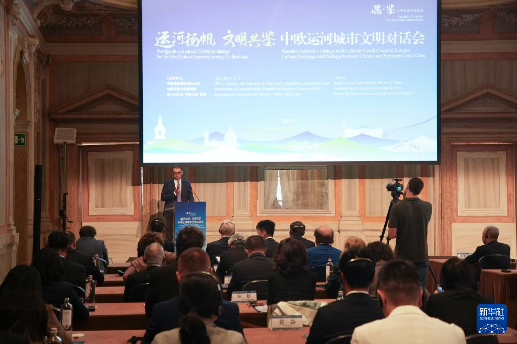 9月27日,在意大利威尼斯,與會嘉賓出席“運河揚帆 文明互鑒”中歐運河城市文明對話會活動。新華社發