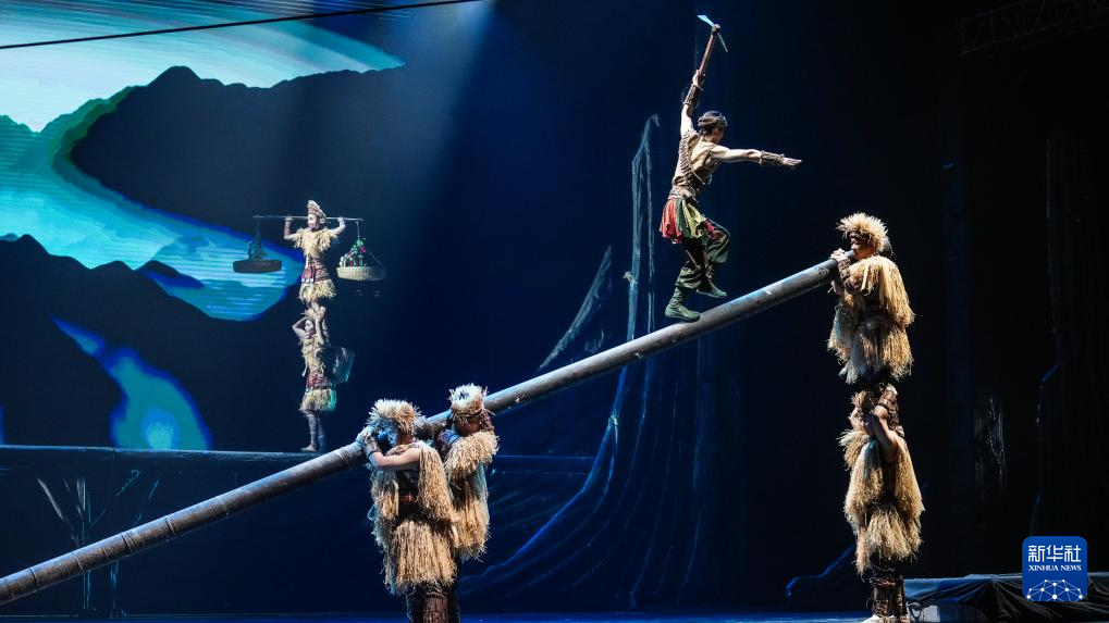 10月9日,演員在表演雜技劇《脊梁》。