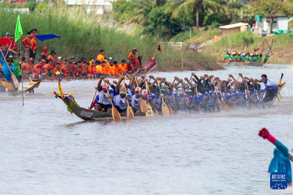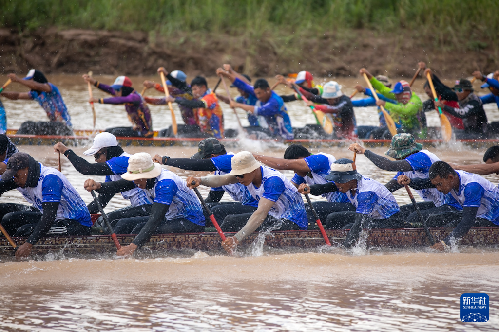 10月8日,龍舟競速活動在老撾萬象湄公河上進行。