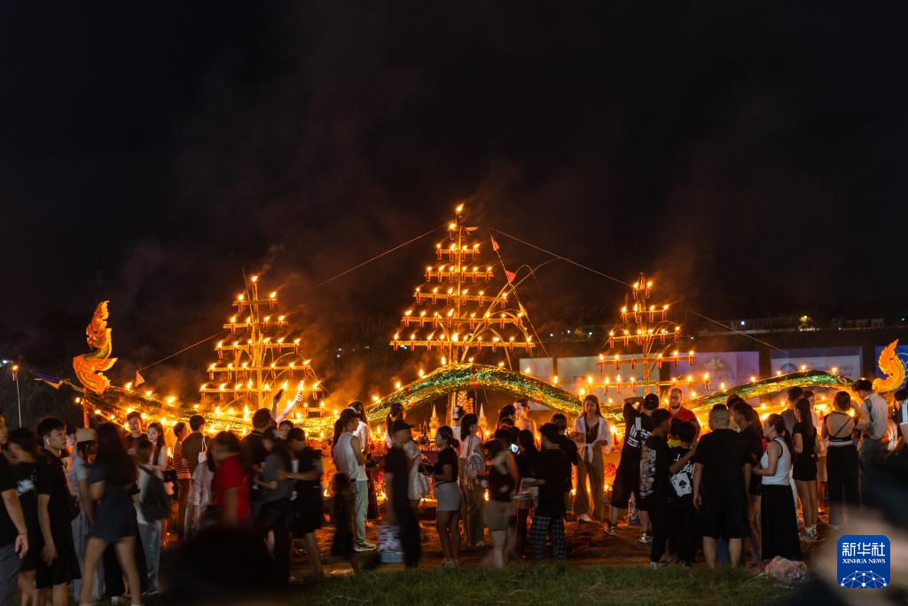 老撾7日起迎來傳統節日送水節。當天傍晚時分,萬象居民來到湄公河畔游玩觀賞,在各式花燈前合影留念,并將水燈送入河中祈福。龍舟競速活動則于8日在湄公河舉行。