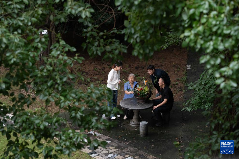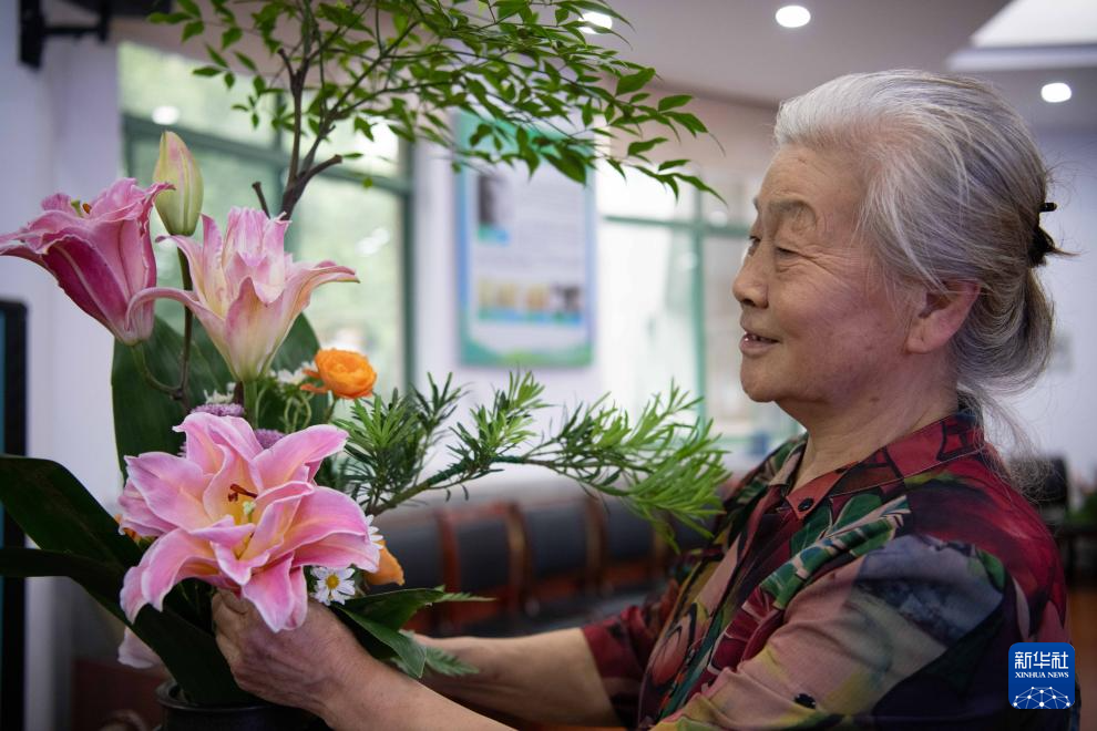 八旬老人付玉蘭是這支團隊的發起人,退休前,她在安徽農業大學任教,助推了該校在全國較早開設“插花藝術” 課程,她還常態化舉辦學生插花作品展,受到校內外關注。