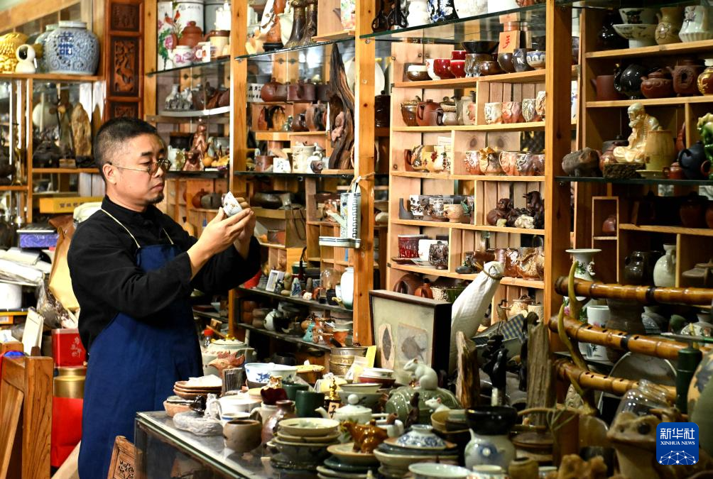 10月11日,在位于河北省石家莊市橋西區的工作室內,李軍航在檢查殘破瓷器情況。