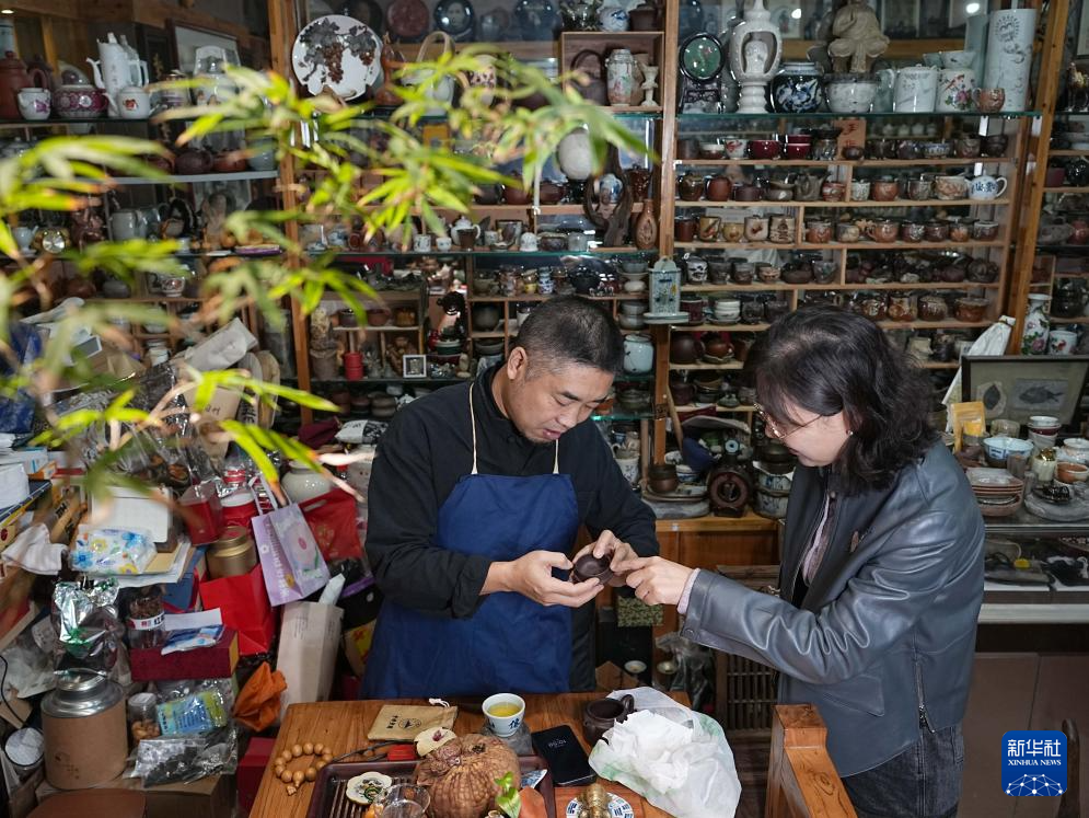 10月11日,在位于河北省石家莊市橋西區的工作室內,李軍航在接待顧客。