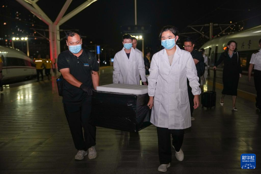 9月10日,在長沙子彈庫戰國帛書從北京運抵長沙南站后,工作人員搬運裝有長沙子彈庫戰國帛書的箱子。