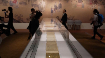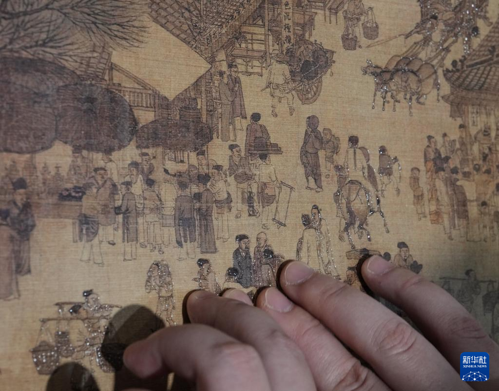 10月13日,視障人士在發布會后,欣賞無障礙版《觸摸<清明上河圖>》。