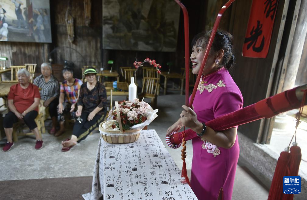 10月12日,民間藝人在寺平村為村民表演國家級非遺項目“金華道情”。