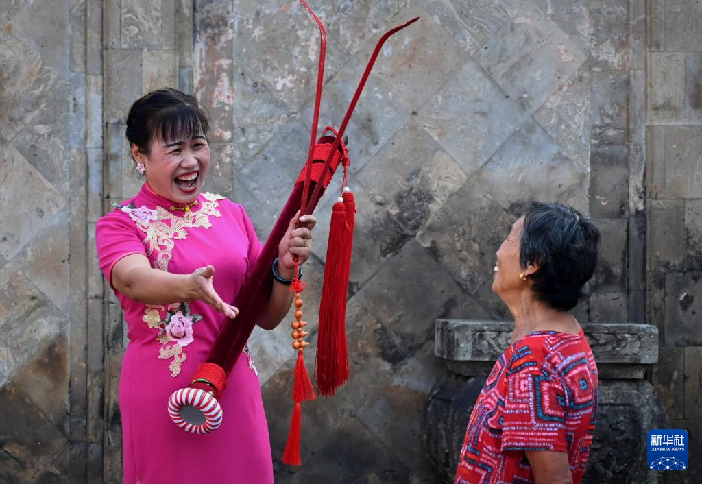 10月12日,民間藝人在寺平村內為觀眾表演國家級非遺項目“金華道情”。