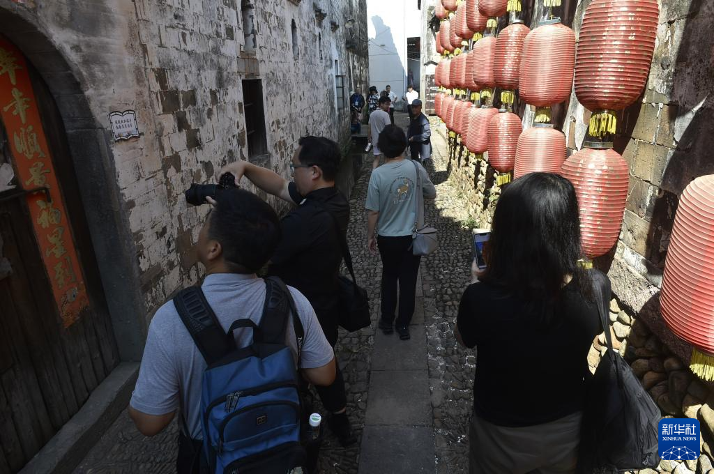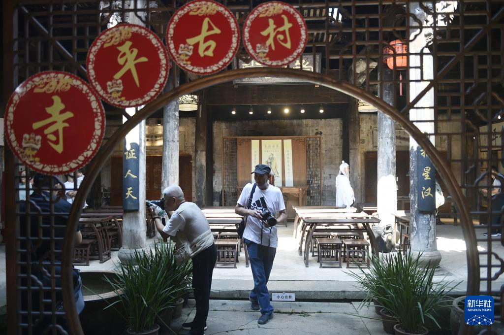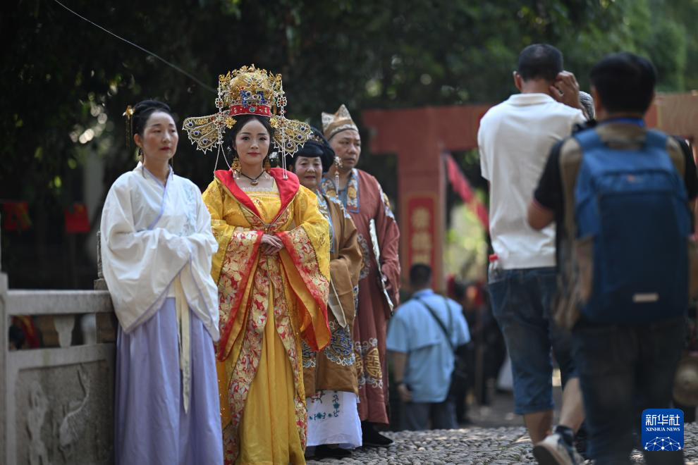 10月12日,身穿古裝的村民在寺平村內為游客表演根據本村歷史故事編排的情景劇。
