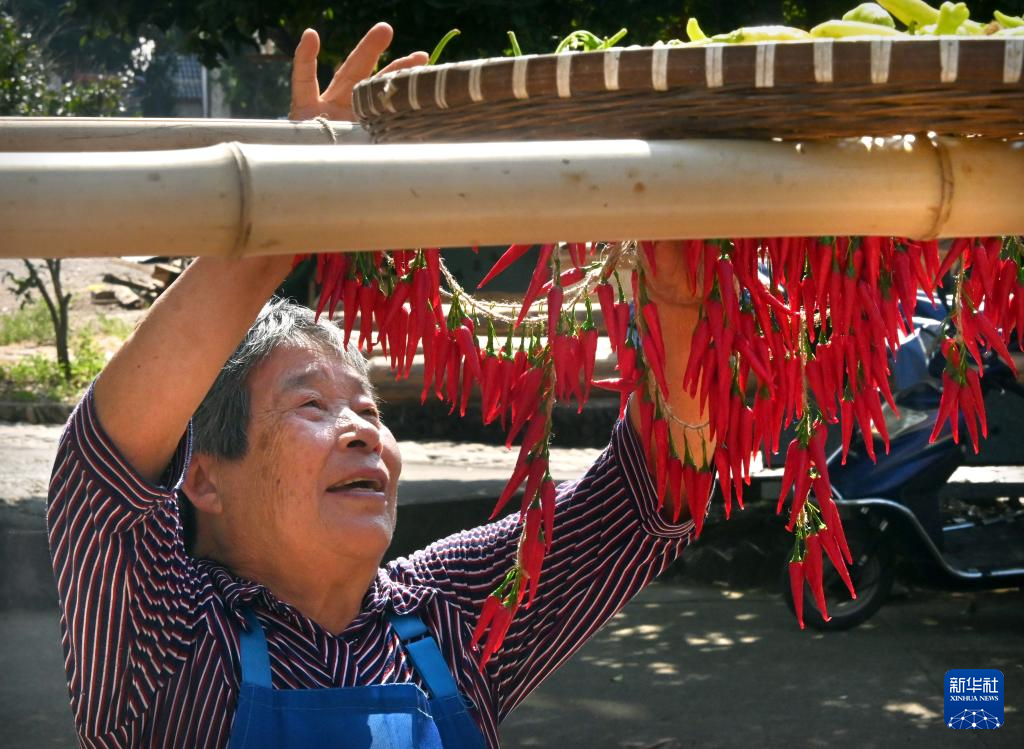 10月12日,一名老人在寺平村的農家小院外歇息。
