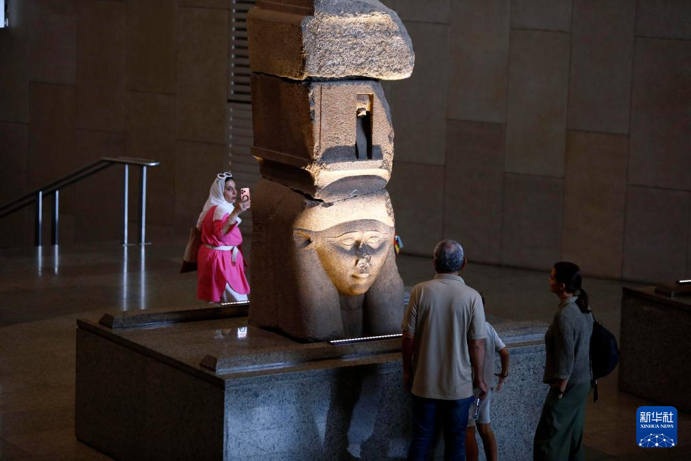 10月14日,游客在位于埃及吉薩省的大埃及博物館參觀。