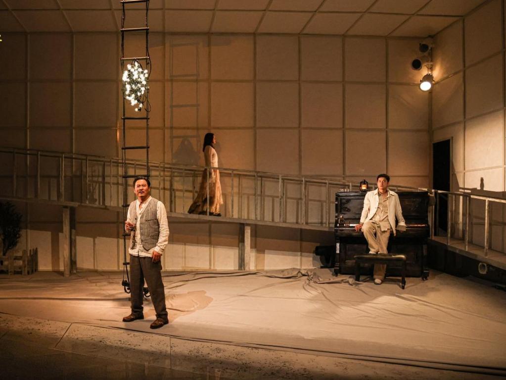 據介紹,舞臺設計采用寫意風格,象征海邊淺灘的水洼與象征家庭環境的陸地中,僅陳設孤舟、鋼琴、軟梯等少量道具,展現原著中“霧”的意象,營造朦朧的戲劇氛圍。