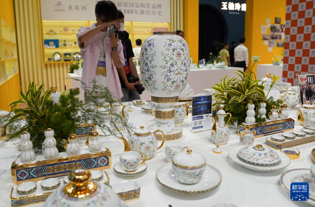 這是陶瓷博覽會展區展出的餐具(10月18日攝)。