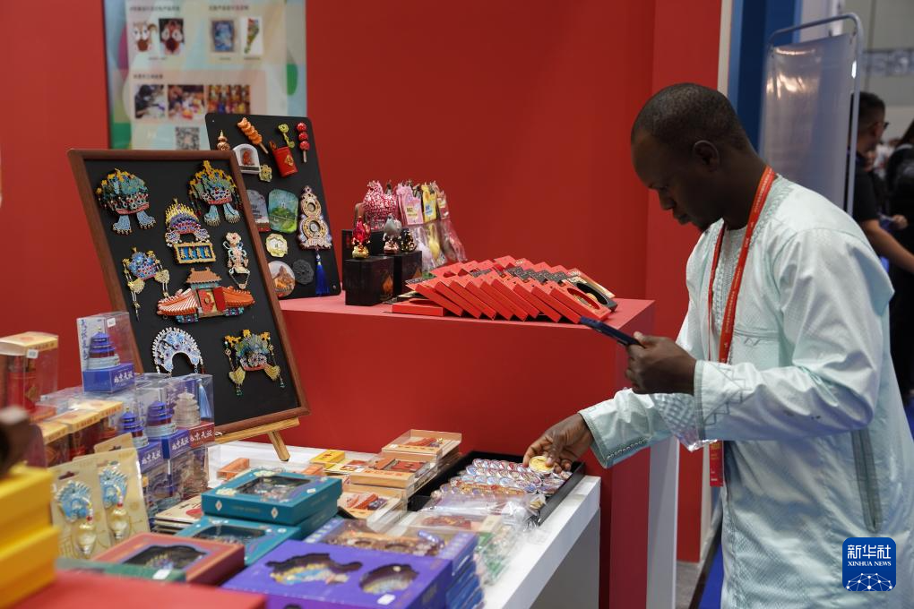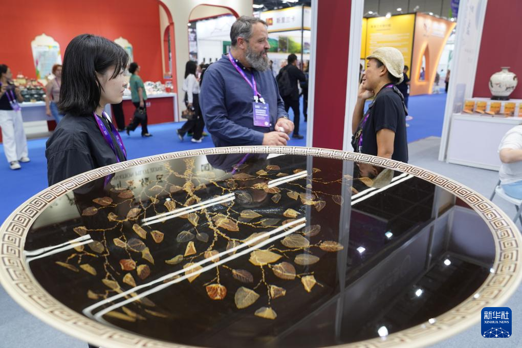 10月18日,參展商在陶瓷博覽會展區觀看文創產品。