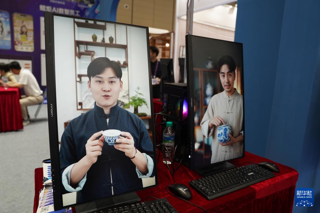 10月18日在陶瓷博覽會展區拍攝的AI陶瓷銷售系統展示。