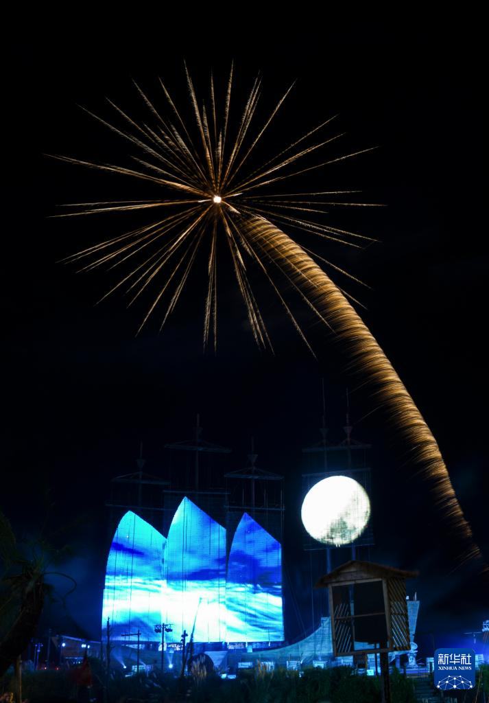 10月20日在廣西北海市合浦縣海絲首港景區拍攝的煙花秀。