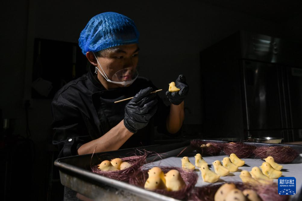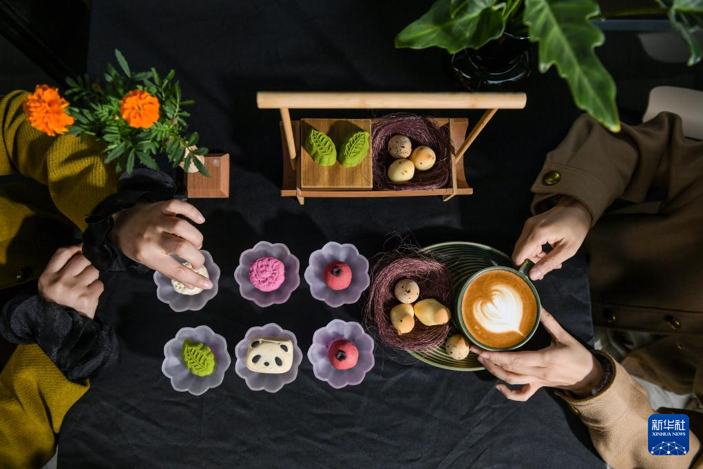10月21日,工作人員在尋川美術館生活體驗中心制作創意糕點黃鸝酥。
