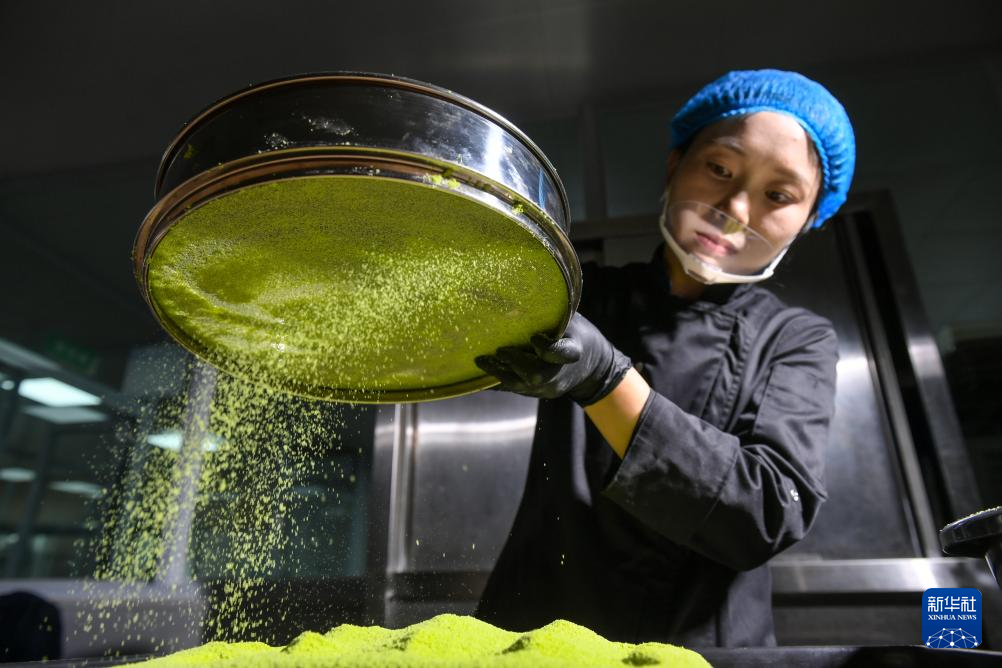 10月21日,工作人員在尋川美術館生活體驗中心制作創意糕點槐葉米糕。