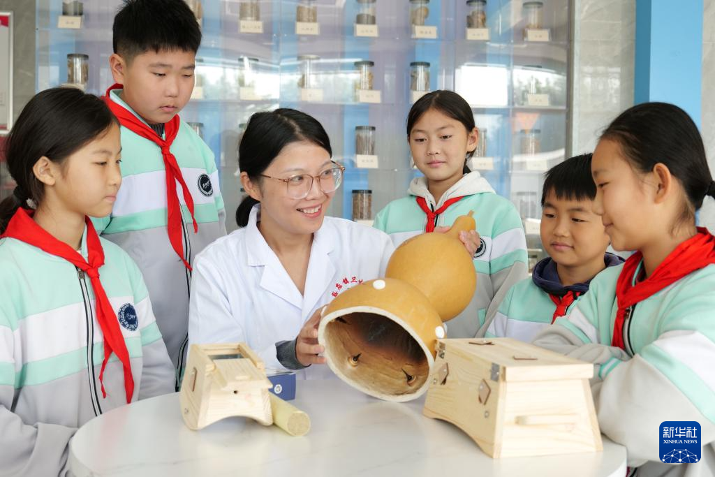 10月21日,在山東省聊城市茌平區成無己紀念館,老師在給小學生們講解中醫知識。