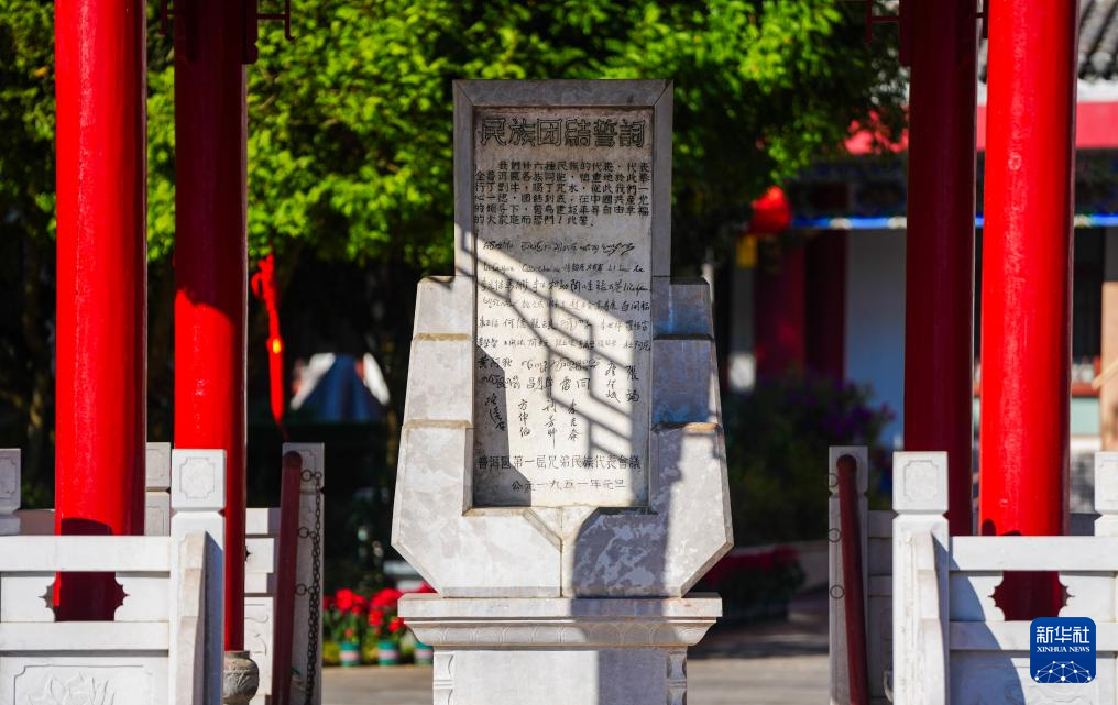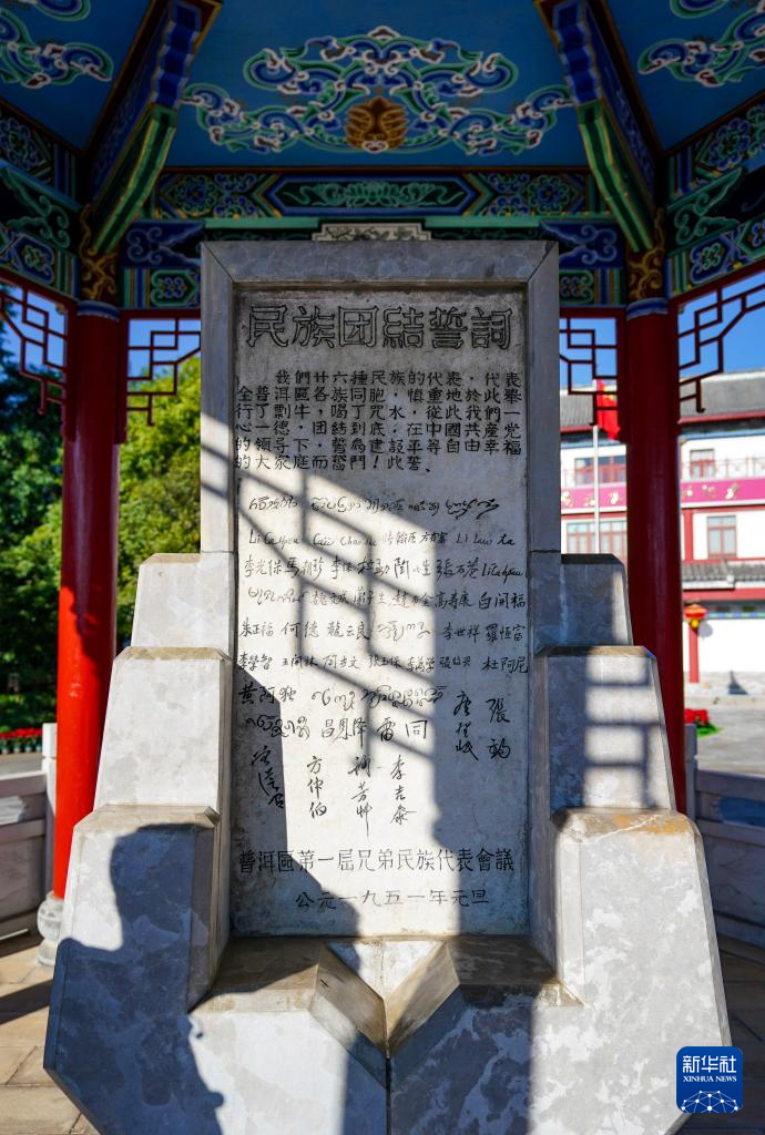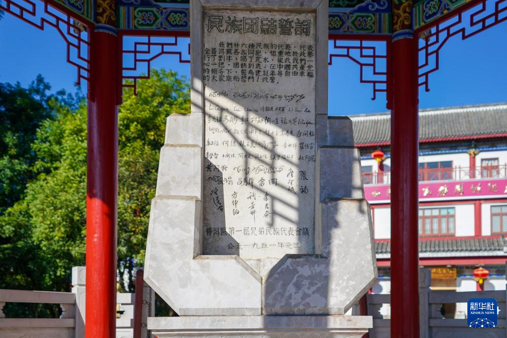 這是10月23日拍攝的民族團結誓詞碑。