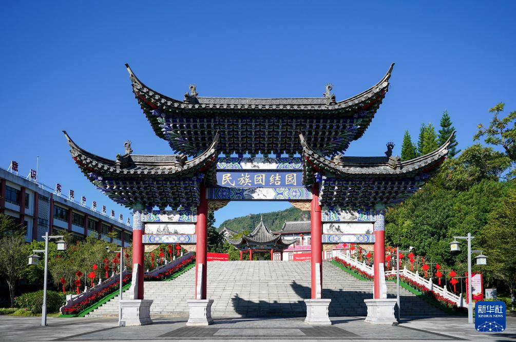 這是10月23日拍攝的云南省普洱市寧洱哈尼族彝族自治縣民族團結園。