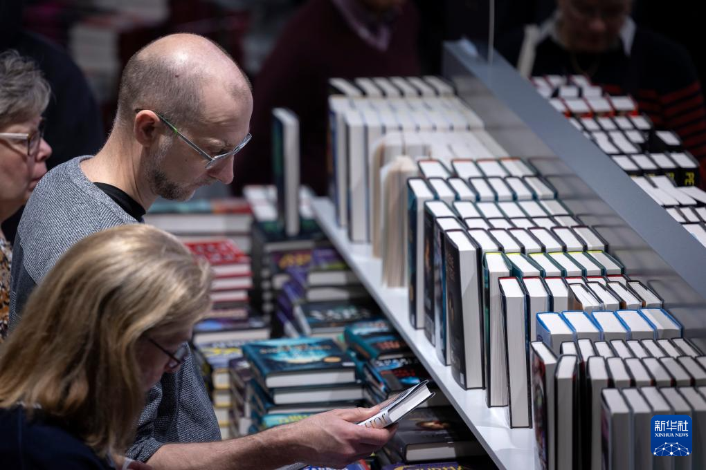 10月25日,一名男子在芬蘭首都赫爾辛基會展中心舉行的第25屆赫爾辛基書展上選購書籍。