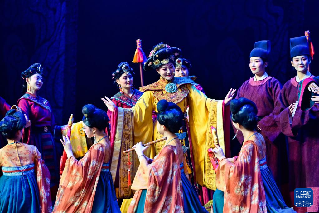 10月26日,演員在天津濱海演藝中心表演藏戲《金城公主》。