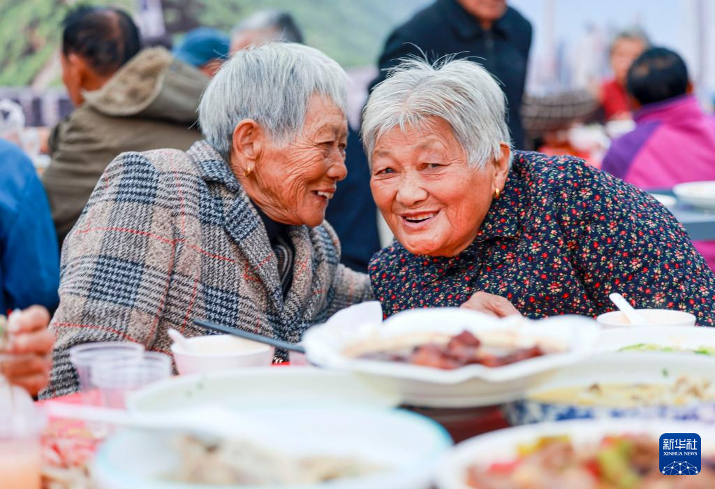 10月27日,在河南省沁陽市西萬鎮留莊村舉辦的“九九重陽節,濃濃敬老情”迎重陽主題活動中,志愿者為老人擺上“長壽宴”菜品。