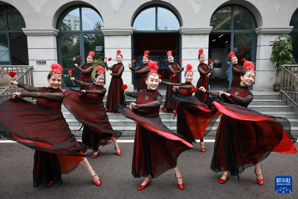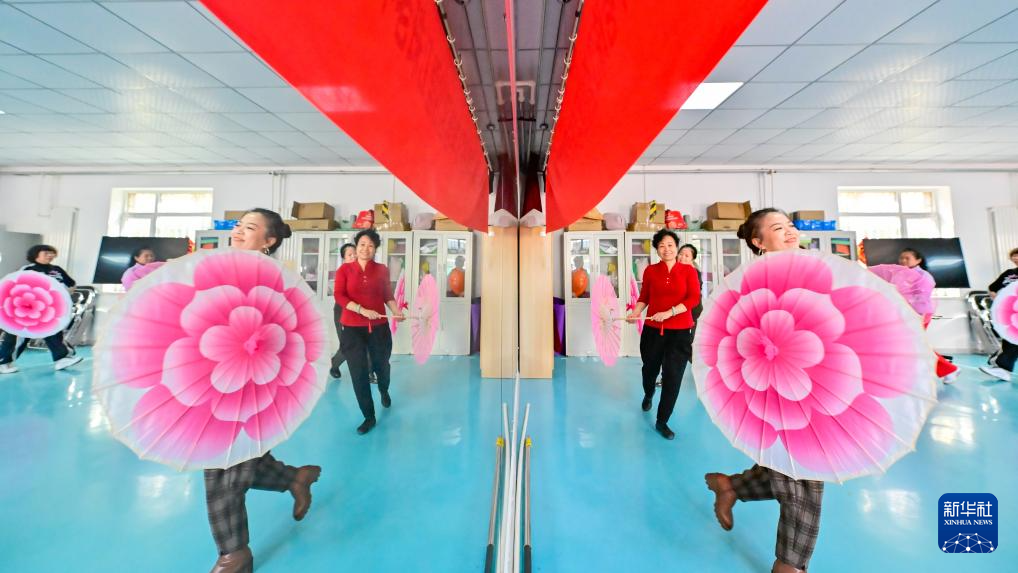 10月27日,老人在天津市濱海新區新河街道珠江里社區排練舞蹈節目。