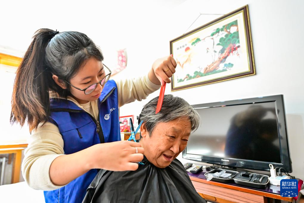 10月27日,在江蘇連云港經濟技術開發區中云街道勝利村,理發師為老人免費理發。
