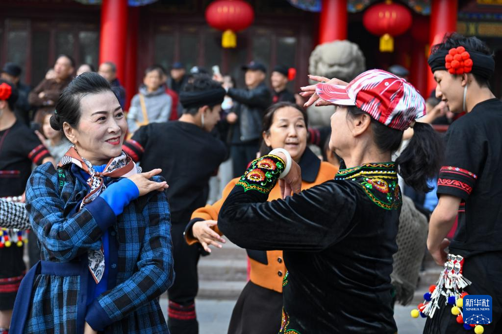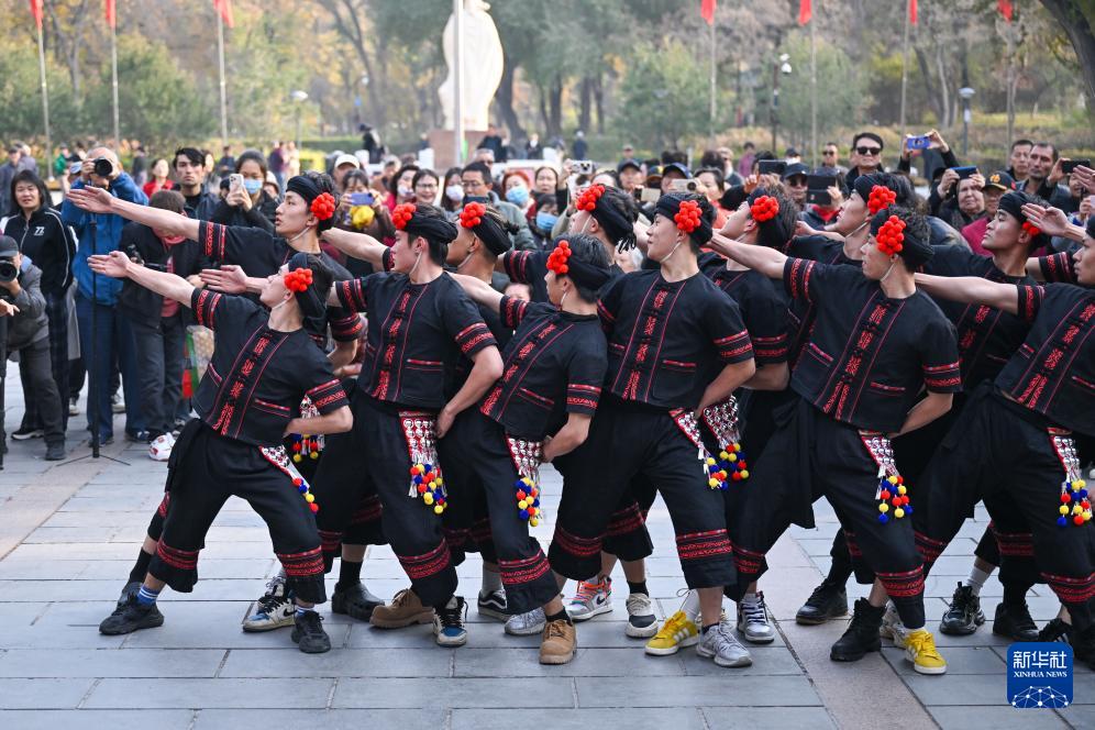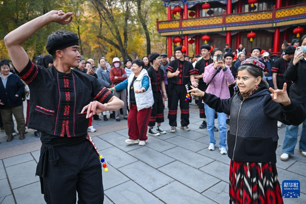 10月27日,在新疆烏魯木齊市人民公園,云南省歌舞劇院的舞蹈演員現場演繹《望山》片段。