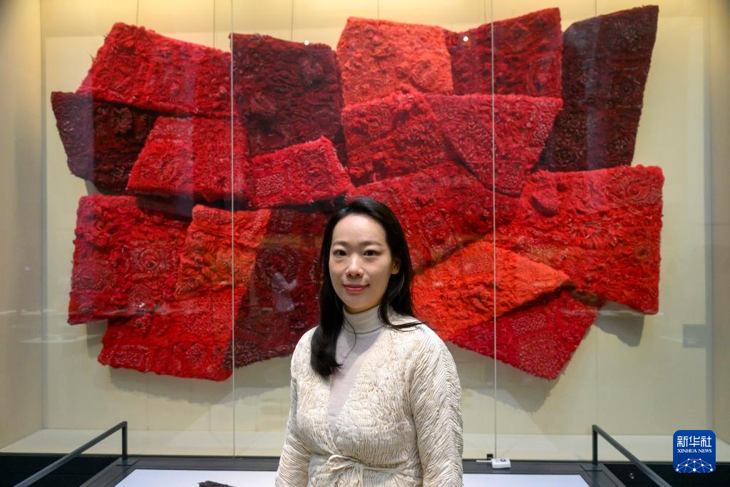 10月27日,在英國倫敦維多利亞與阿爾伯特博物館(V&A),李曉欣參加《多維:中國當代工作室工藝》展覽媒體預展。新華社發(雷伊·唐攝)