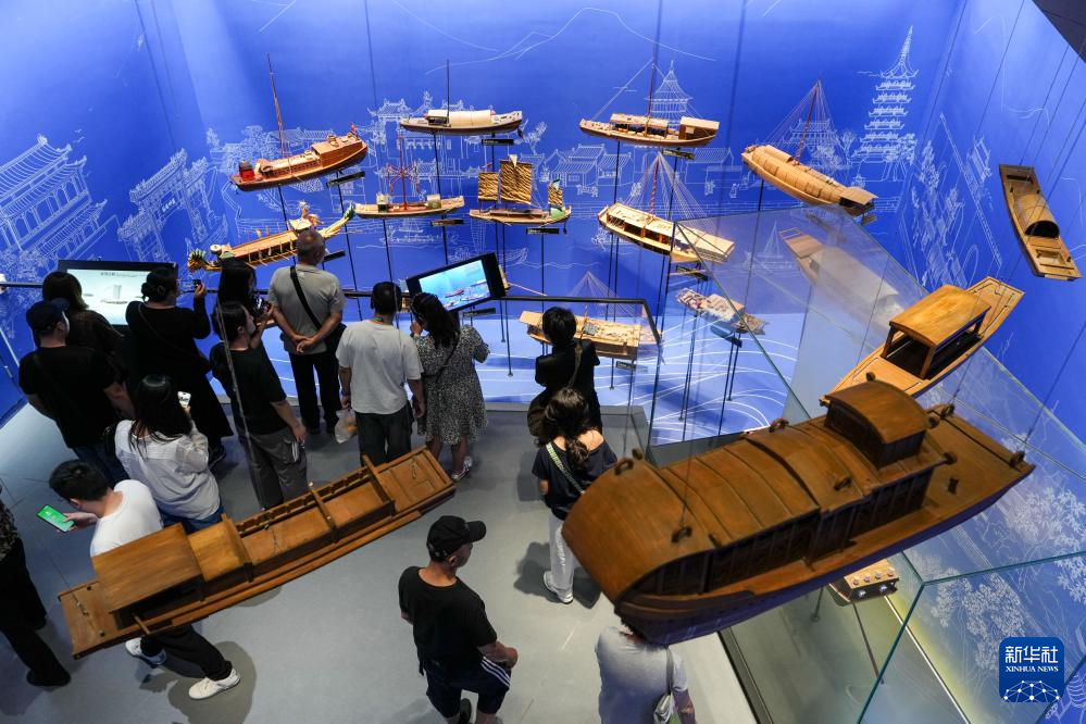 10月11日,游客在位于江蘇省揚州市的中國大運河博物館內參觀。