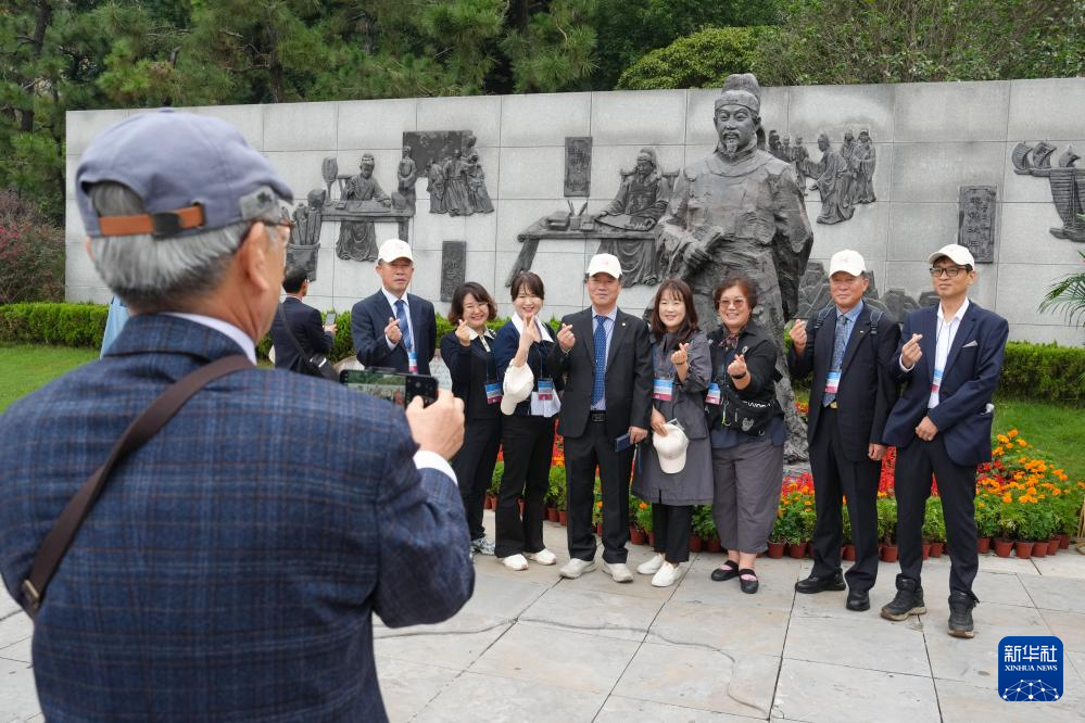 10月15日,韓國慶州崔氏中央宗親會組織的代表團在江蘇省揚州市的崔致遠紀念館內參觀。