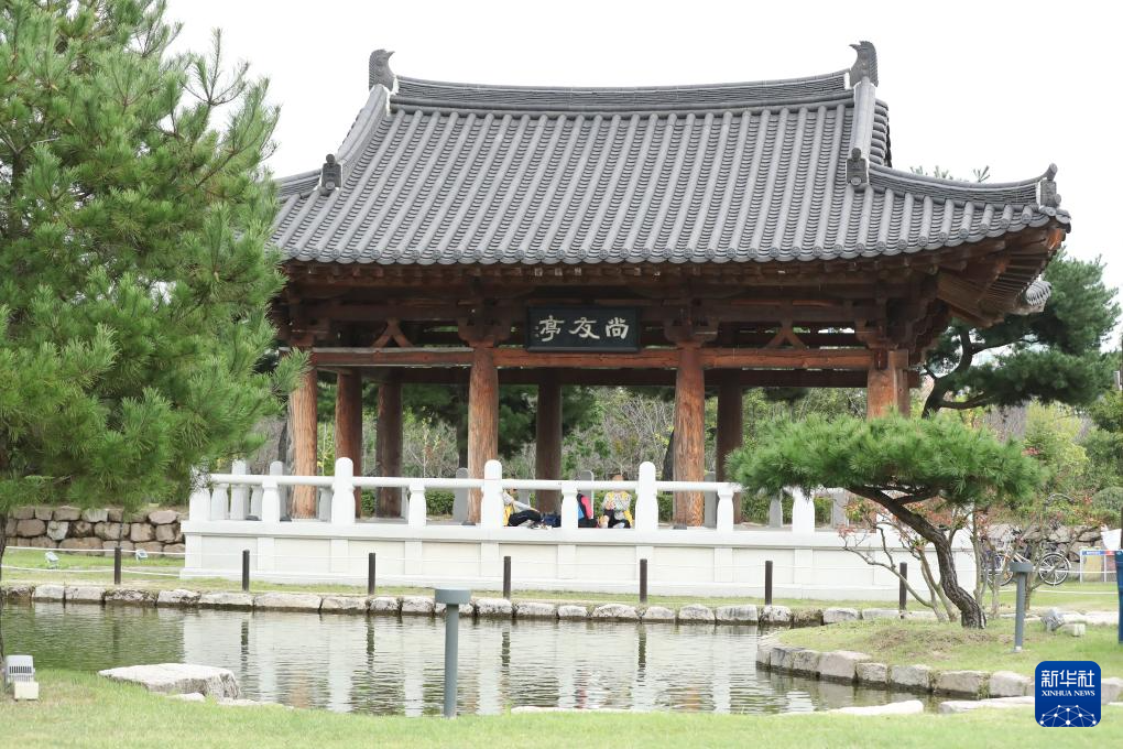 10月17日,市民在韓國慶州的“韓中友好林”公園里的尚友亭休息。