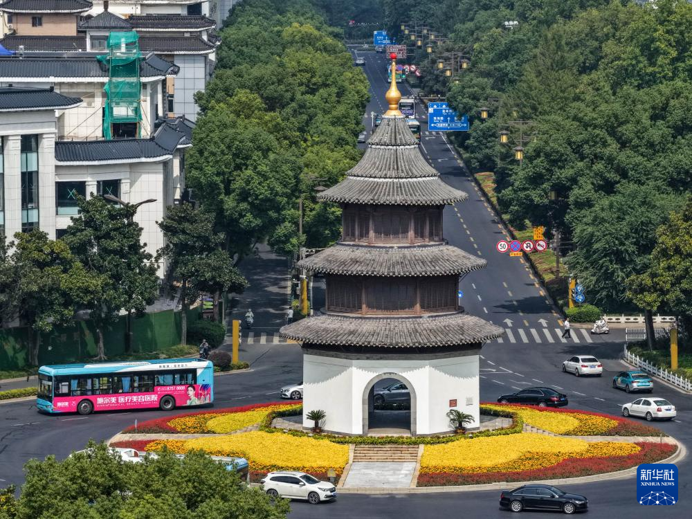 10月11日拍攝的江蘇省揚州市文昌閣(無人機照片)。