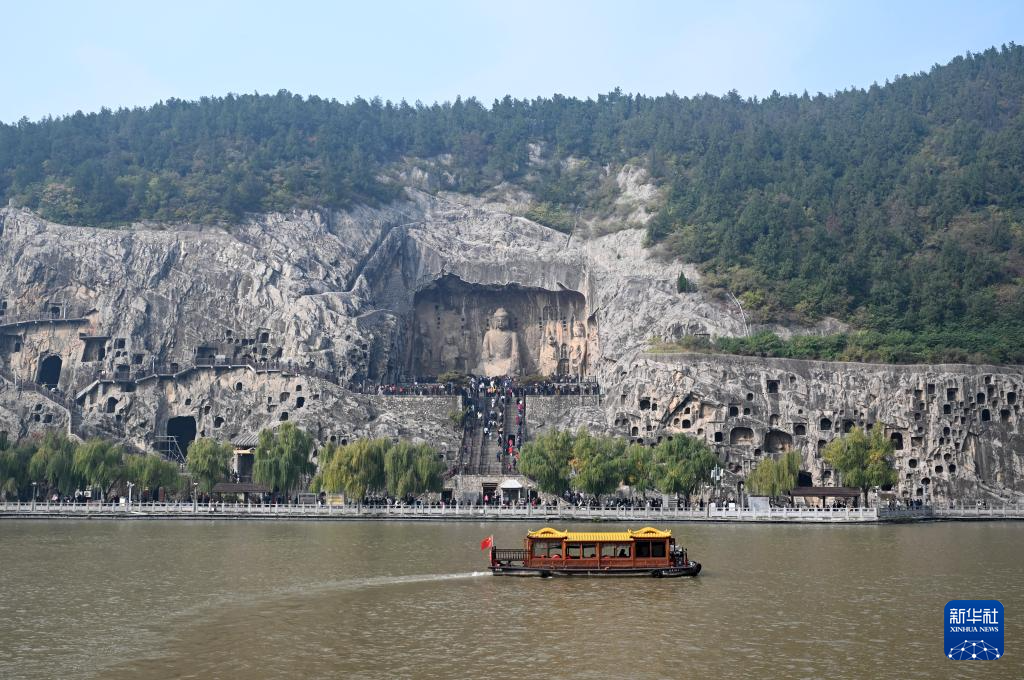 11月4日,游客在河南省洛陽市龍門石窟景區游玩。