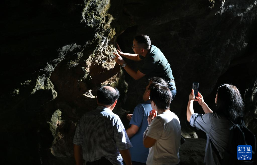 11月8日,考古專家在三亞落筆洞遺址觀察出土標本。