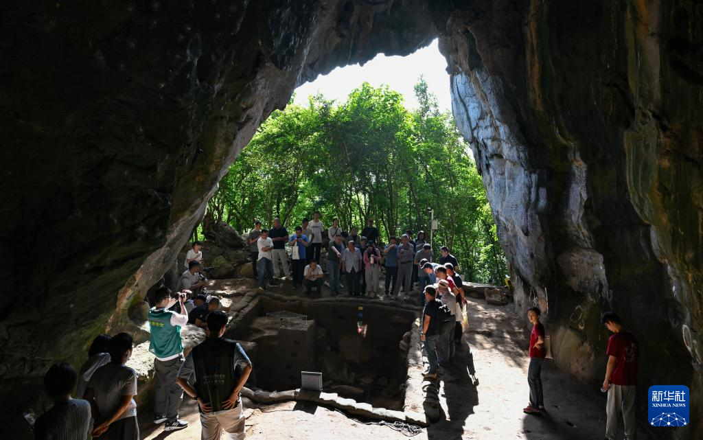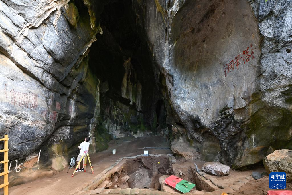 11月8日,考古專家在三亞落筆洞遺址觀察發掘現場。