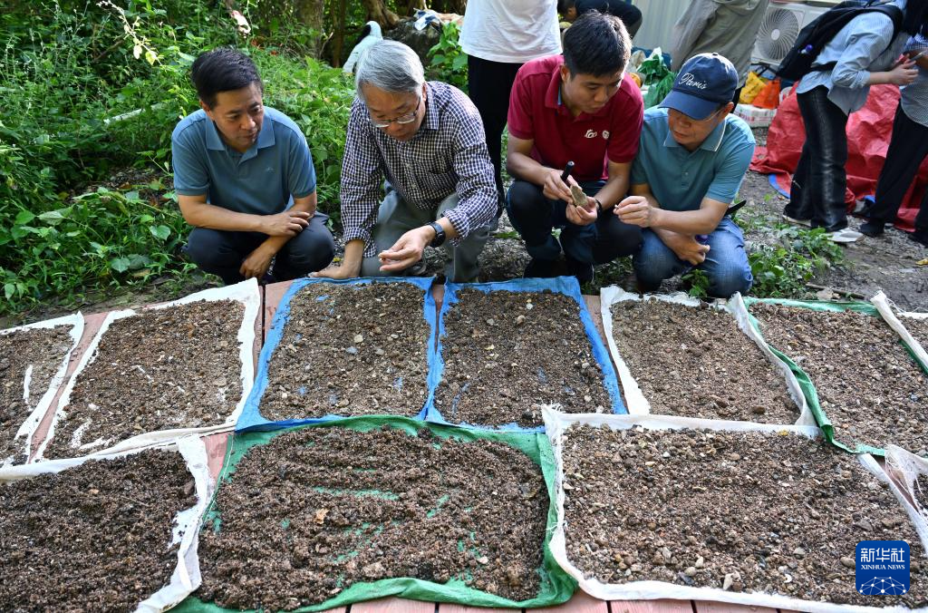 11月8日,考古專家對三亞落筆洞遺址出土土壤進行篩選。