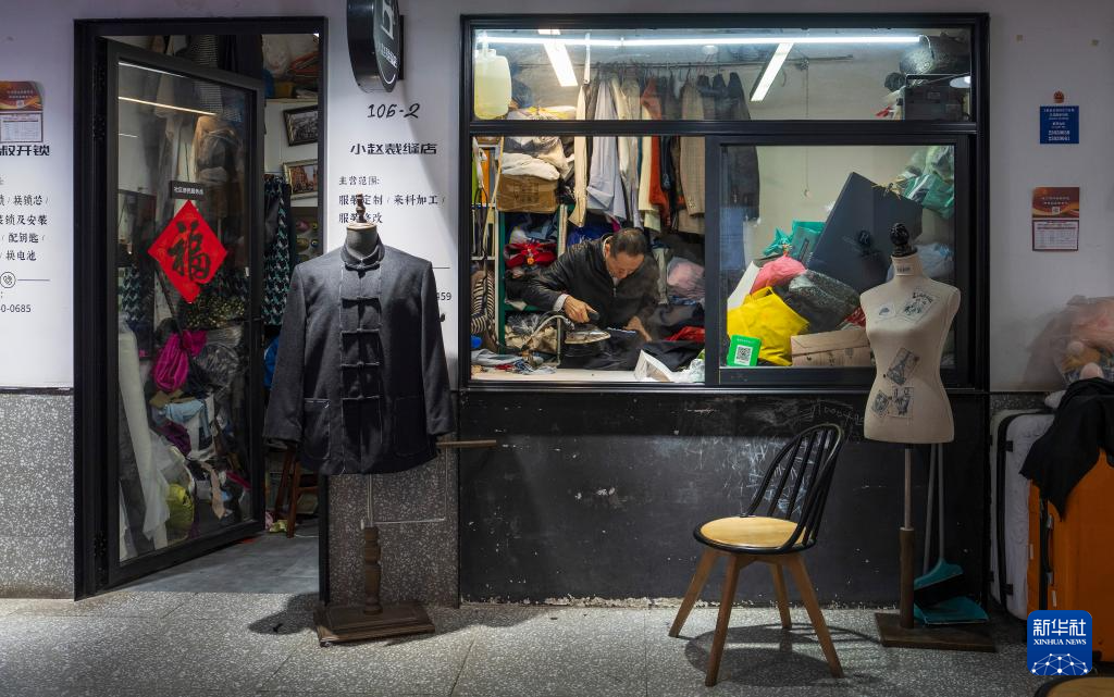 11月12日,上海市長寧區愚園路的小趙裁縫店店主在熨燙衣服。